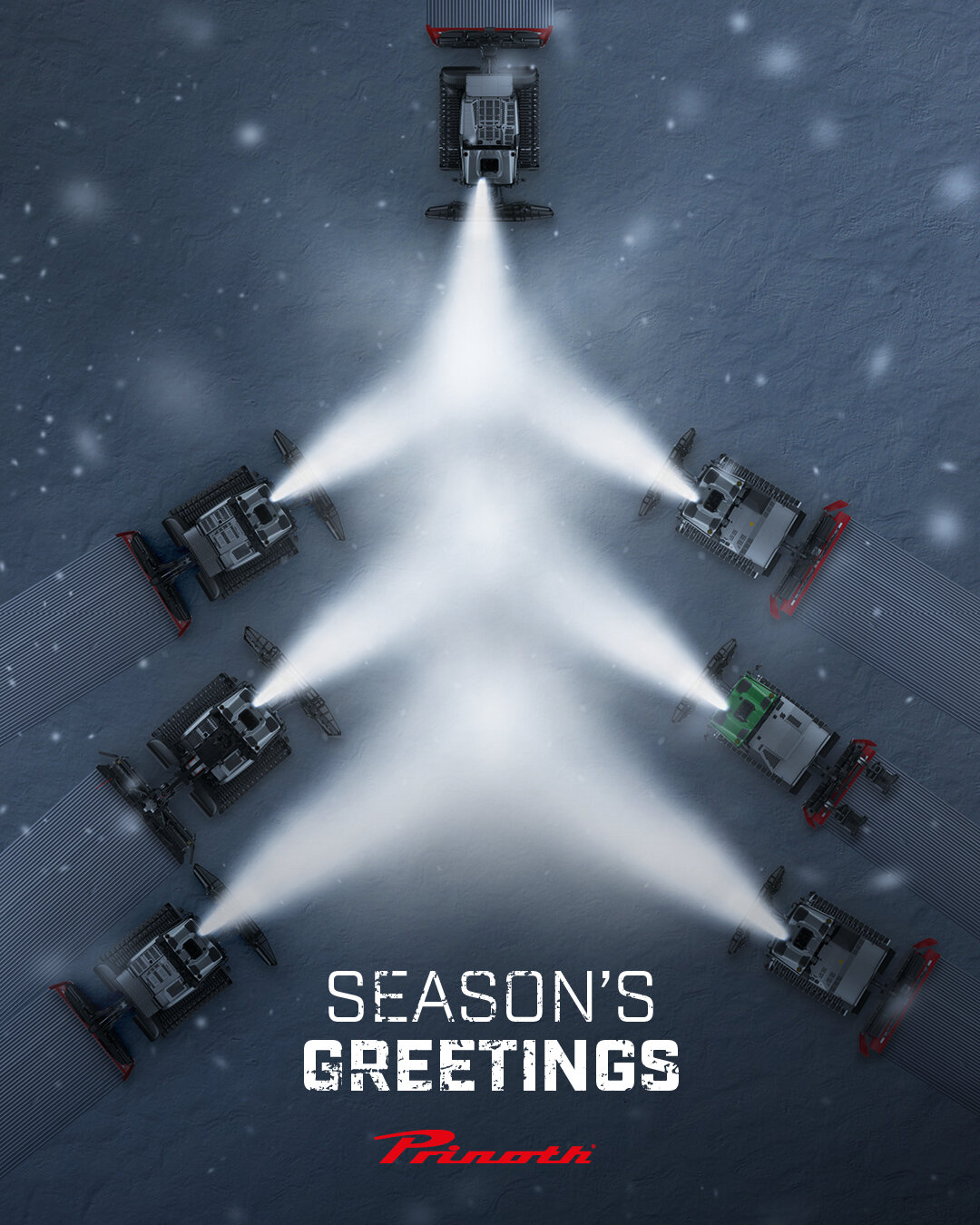 LED it shine 😌🎄✨ When the mountain lights up, you know who’s working. Season’s greetings to the operators, teams, and night shifters behind every perfect morning ride. #Prinoth #snowgroomers